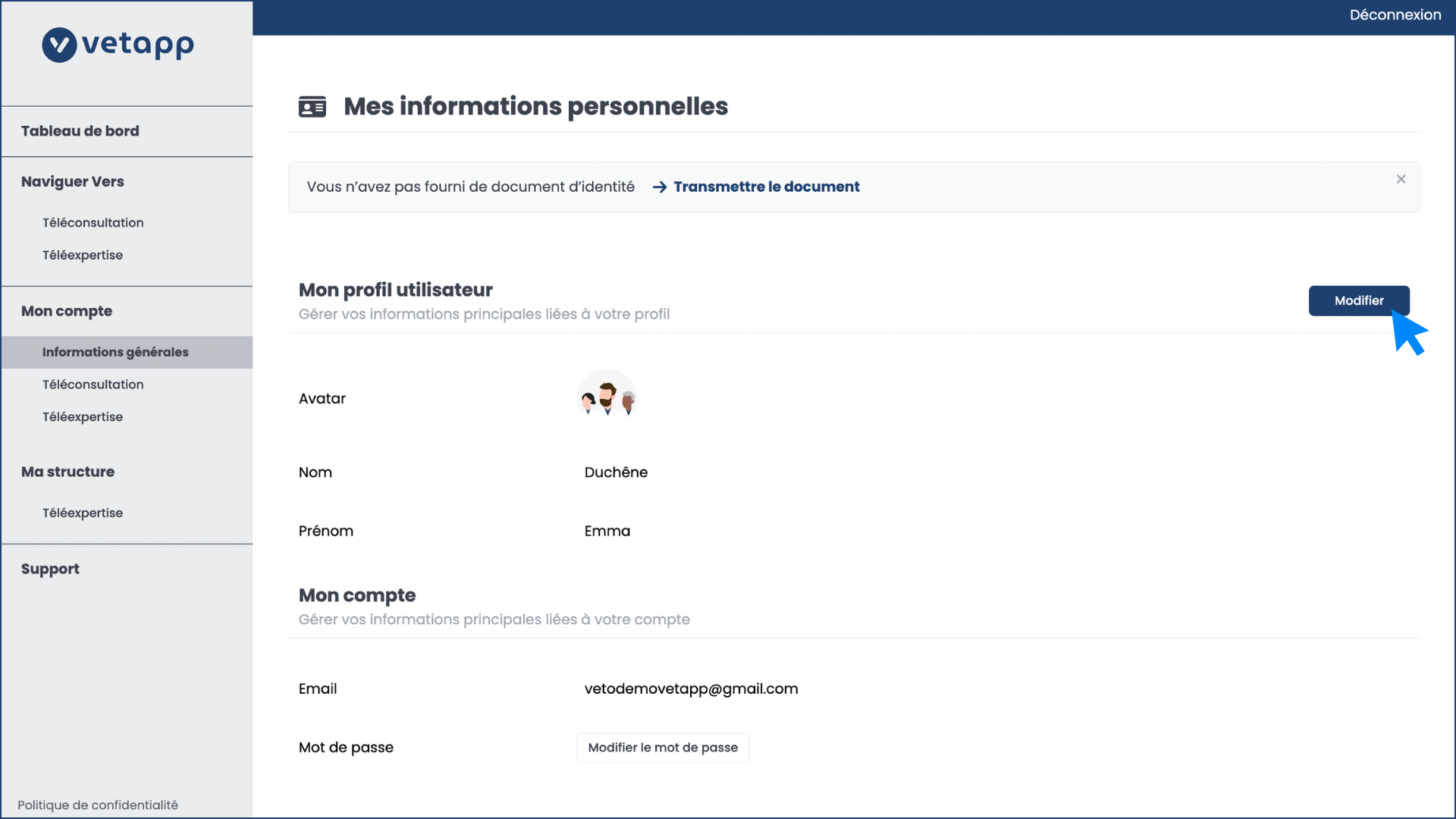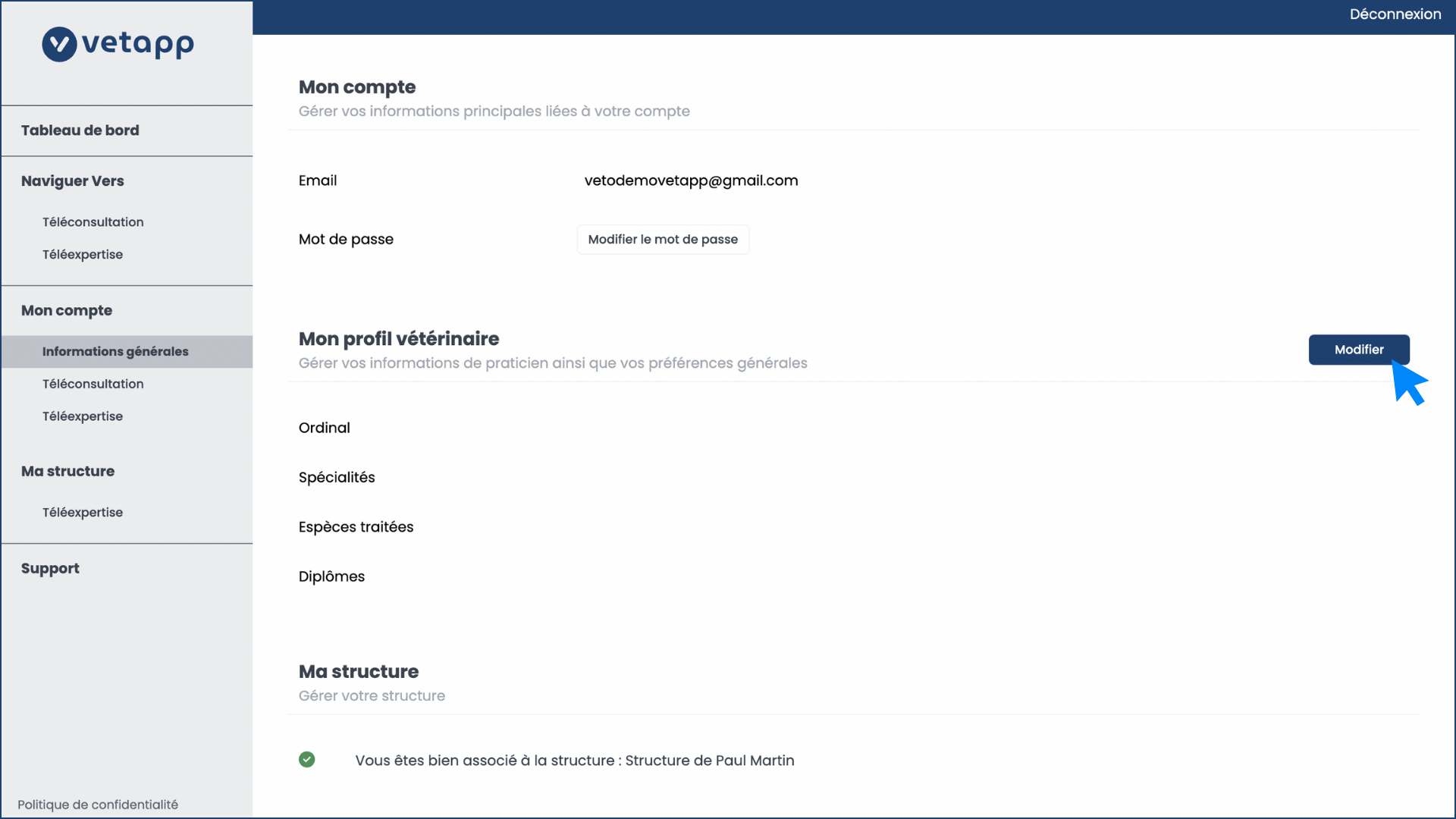 Étape 4 - Modifier son profil vétérinaire